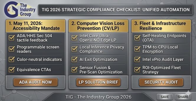Intel’s “Store-in-a-Box” reference architecture is now the benchmark for this checklist. By utilizing the vPro management layer, operators can remotely audit a fleet’s ADA Compliance state and AI Inference health without a truck roll—a critical requirement for 2026 ROI.