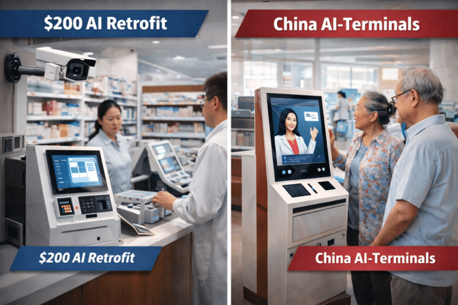 The “$200 AI Retrofit” strategy allows organizations to upgrade existing kiosks, cameras, and terminals with low-cost AI modules instead of replacing entire systems. In contrast, China is deploying AI-native smart terminals built from the ground up, integrating edge computing, sensors, and AI inference directly into new infrastructure.